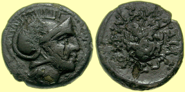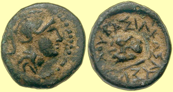 Mint: Uncertain. Struck: Before 281 BC. Obv: [no legend] Helmeted head of Athena right. Rev: ΒΑΣΙΛΕΩΣ ΛΥΣΙΜΑΧΟΥ Facing head of Lion. Mm: None. Ref: Müller pl. XLII, 12; SNG Copenhagen 1170. |